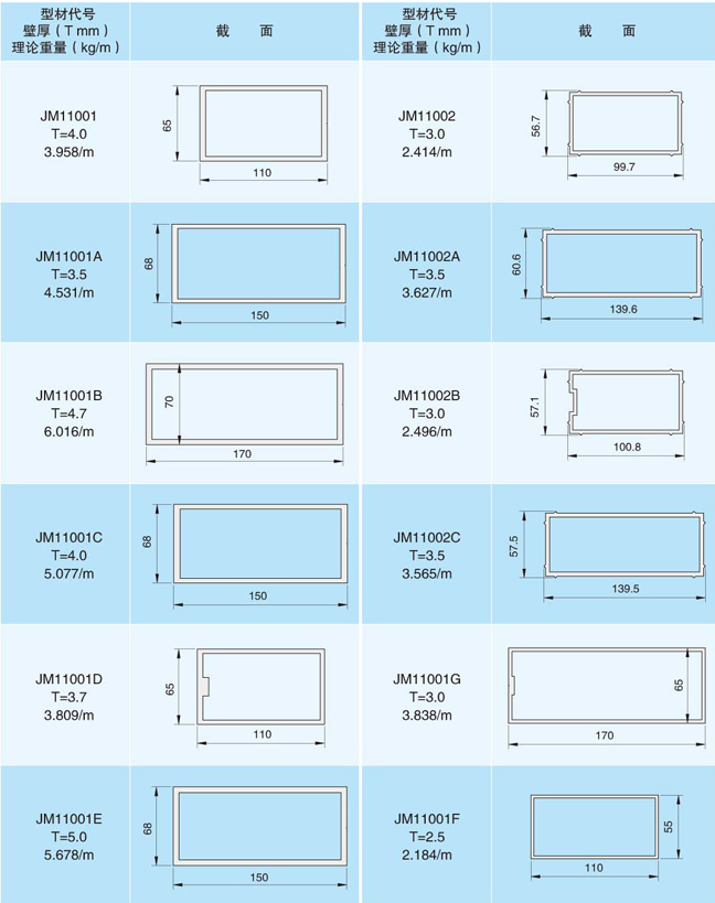 | 产品型号: | JM110系列幕墙型材 |